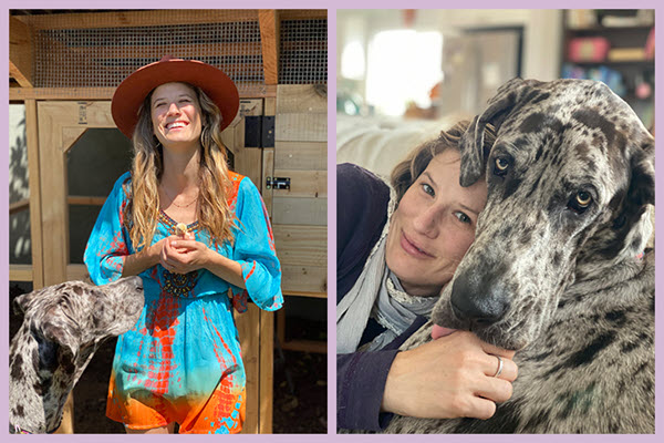 I’m also fond of walking my Great Dane at the beach, playing around in my garden, and tending to my backyard chicken flock.